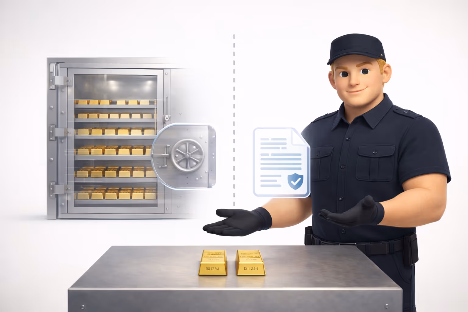 Goud en zilver wordt op naam van klanten bewaard in een kluis in Zwitserland
